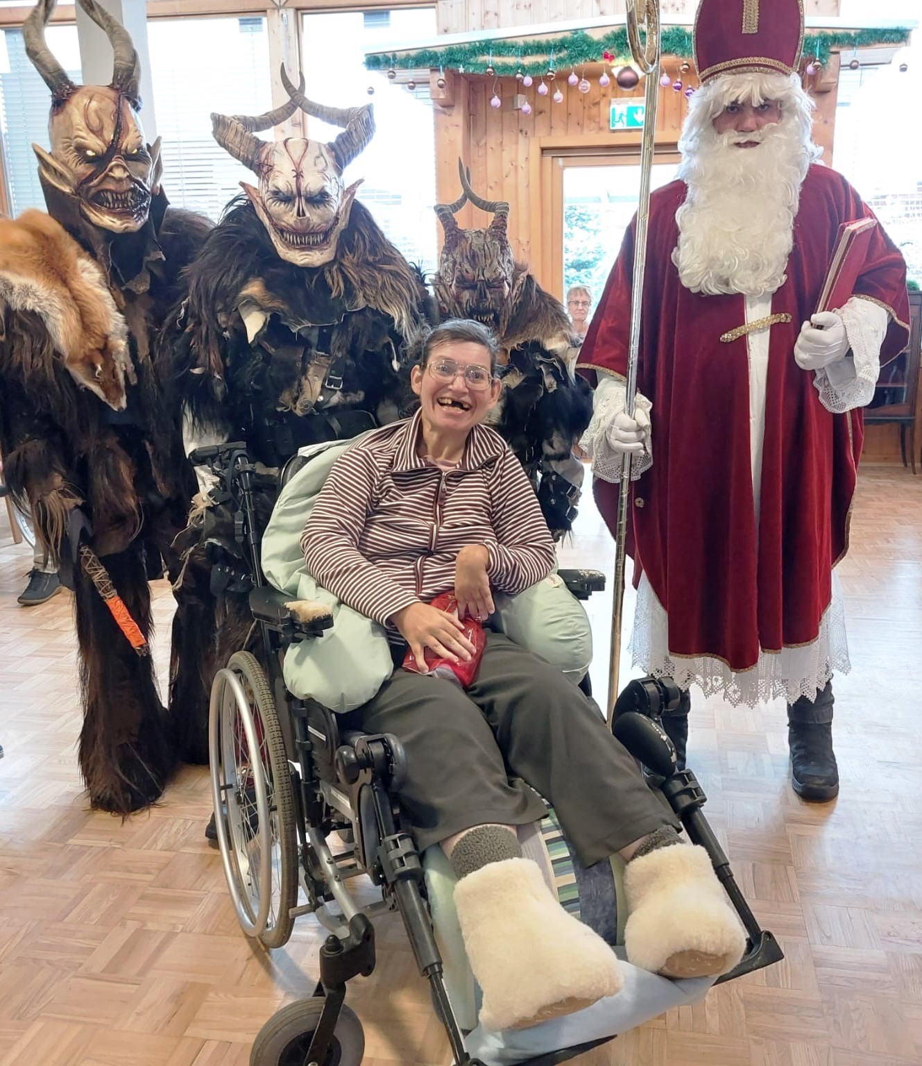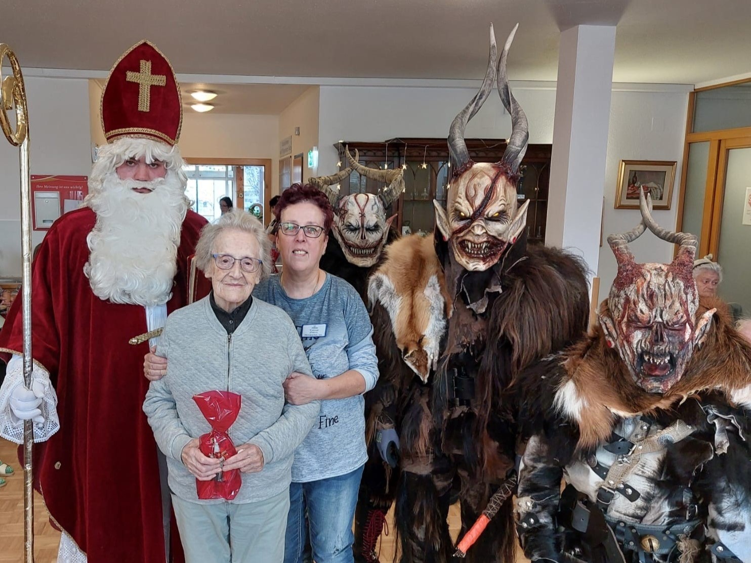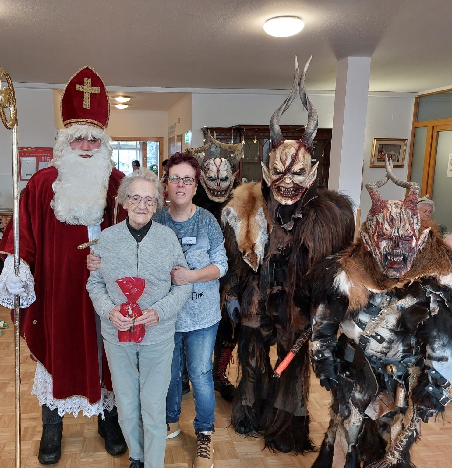 Die Bewohner:innen des SeneCura Pflegezentrums Villach erhielten diese Woche Besuch vom Nikolo und Krampus. Der Besuch weckte viele Erinnerungen aus Kindheitstagen und sorgte für gute Laune im Haus. Der Nikolaus teilte kleine Geschenke aus und zauberte so ein Lächeln auf die Gesichter der Bewohner:innen.