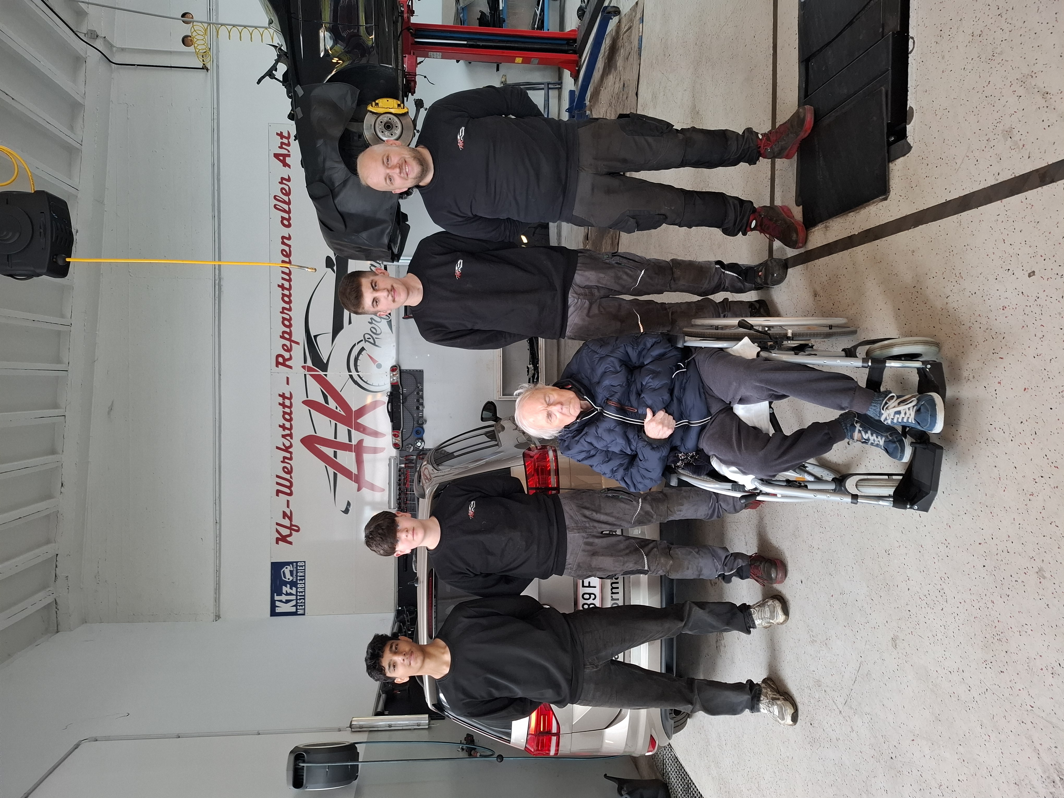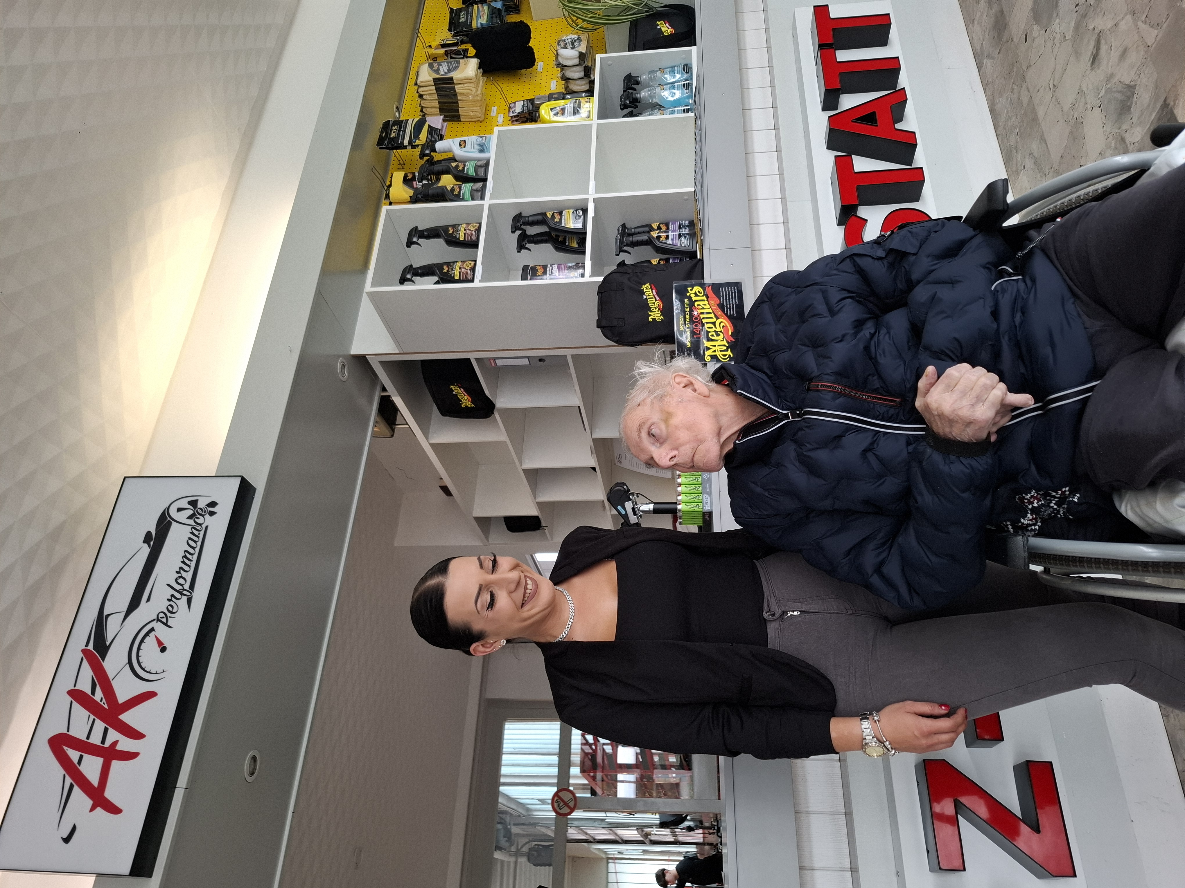 Hr. Höher war am Tag der Wunscherfüllung sehr aufgeregt und voller Erwartungen. Gemeinsam machte man sich auf den Weg zur Werkstatt, wo der Senior von einer sehr netten Dame in Empfang genommen wurde. Der Chef sowie alle anwesenden Mittarbeiter haben Hrn. Höher eine schöne Zeit bereitet. Es wurde an Reifen geschraubt und montiert. Diese Arbeitsschritte wurden genauestens von Hrn. Höher beobachtet und kommentiert – auch er konnte einen Beitrag in Form von Reifenfelgen reichen, leisten. Er schaute sich die Architektur der Halle sowie die Autos und das Inventar genau an. Nachdem alles besichtig wurde, ging der Besuch zu Ende und wir wurden herzlich verabschiedet.