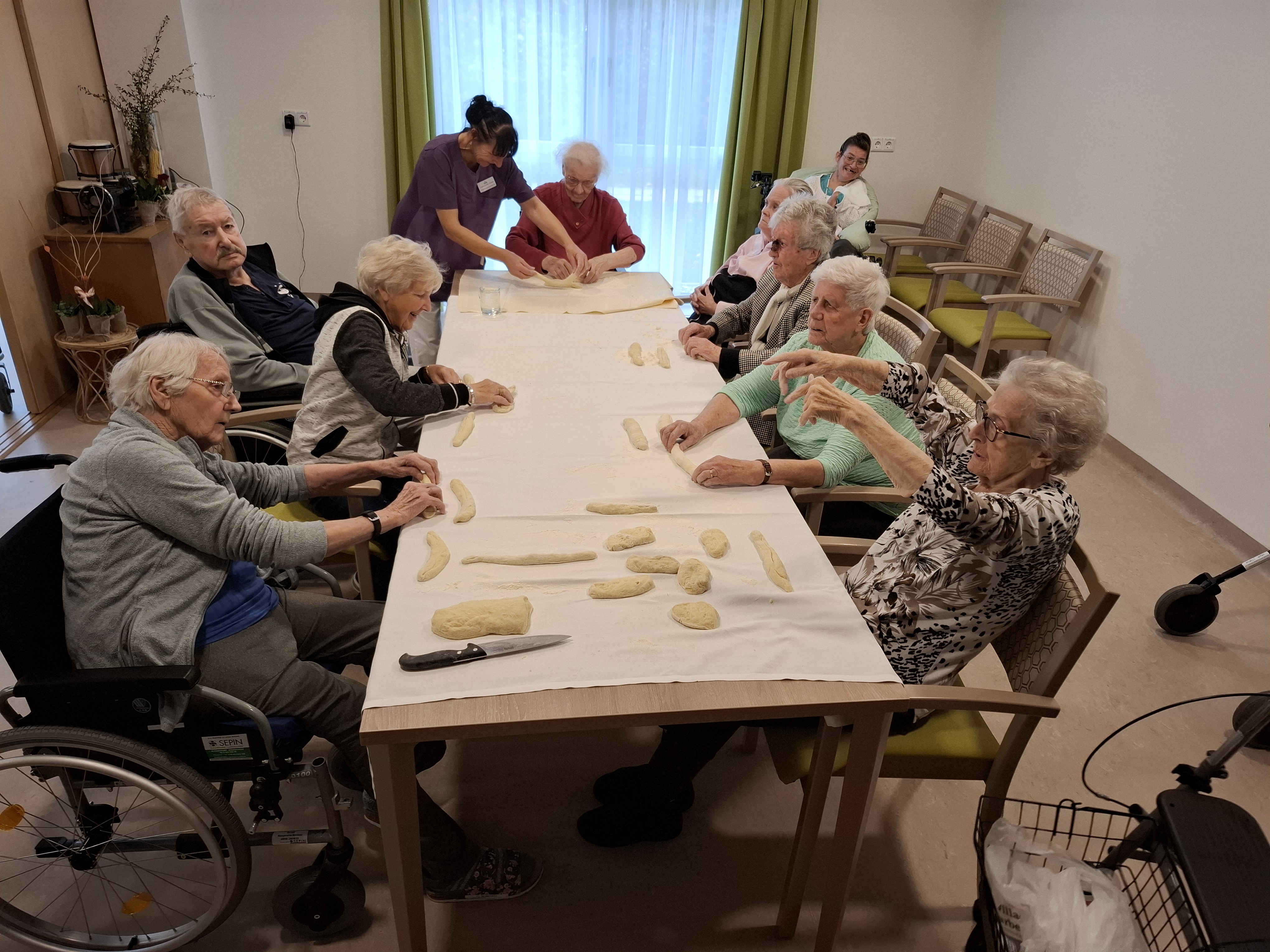 Im SeneCura Pflegezentrum Villach roch es letztens herrlich nach frischem Gebäck. Die Bewohner:innen des Hauses backten nämlich gemeinsam köstliche Allerheiligenstriezel. Mit viel Freude und Sorgfalt wurde der Teig geknetet und anschließend zu traditionellen Striezel geflochten. Das gemeinsam backen weckte tolle Erinnerungen und sorgte für regen Austausch zwischen den Bewohner:innen. Nach dem Backen ließen es sich alle natürlich nicht nehmen, die frischen Allerheiligenstriezel zu kosten – ein süßer Genuss, der Herzen und vor allem Gaumen erfreute!