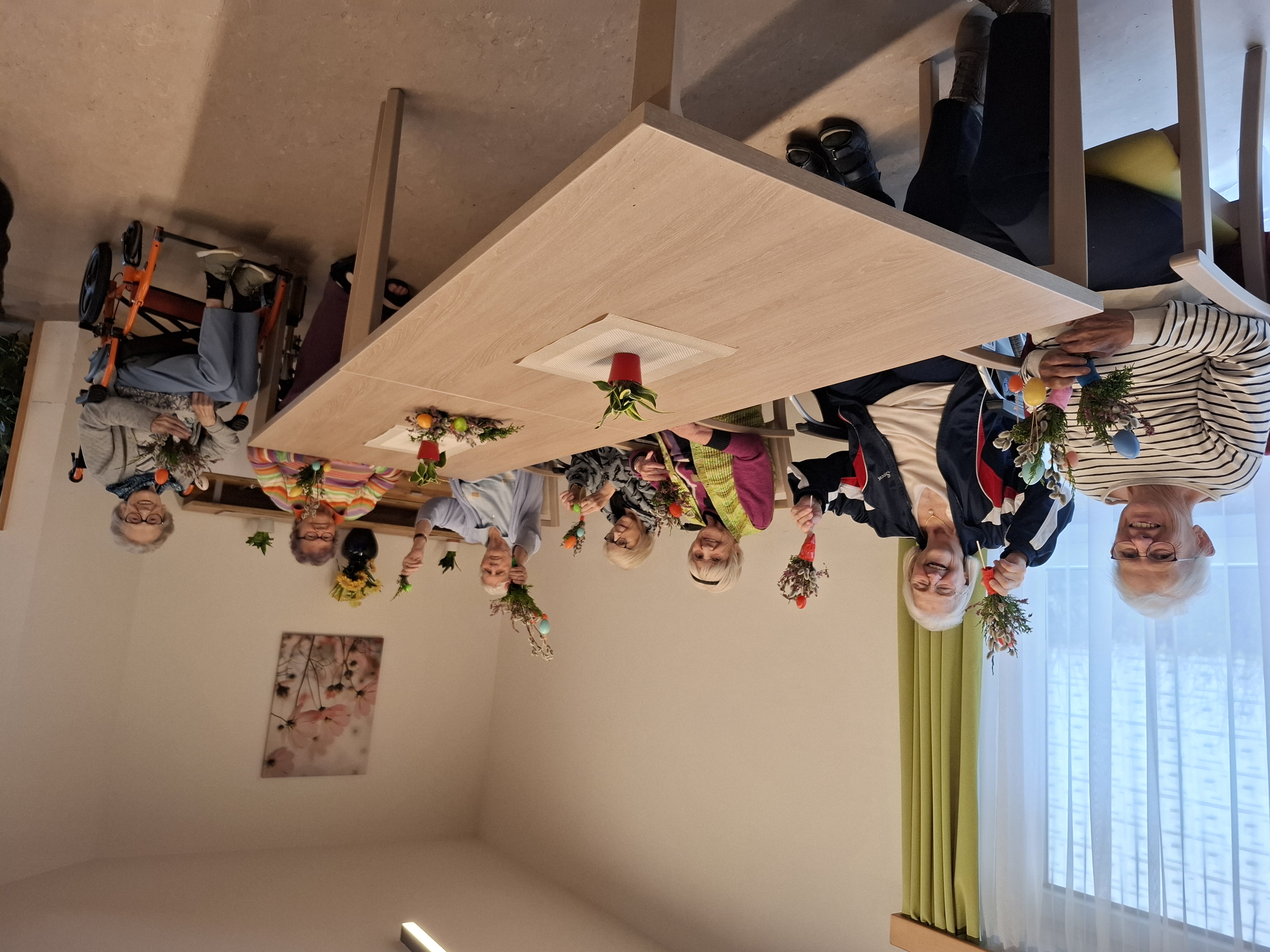 Im Rahmen der Seniorenbetreuung im SeneCura Süd Villach fand das gemeinsame Palmbuschen binden statt. Zusammen wurden die benötigten Materialien vorbereitet und anschließend die traditionellen Palmbuschen gebunden. Die Bewohnerinnen und Bewohner beteiligten sich mit großem Engagement an der Aktivität und zeigten viel Freude am gemeinsamen Arbeiten. Das Palmbuschen binden ist ein fester Bestandteil der Osterzeit und fördert neben der Tradition auch das Miteinander im Haus.
